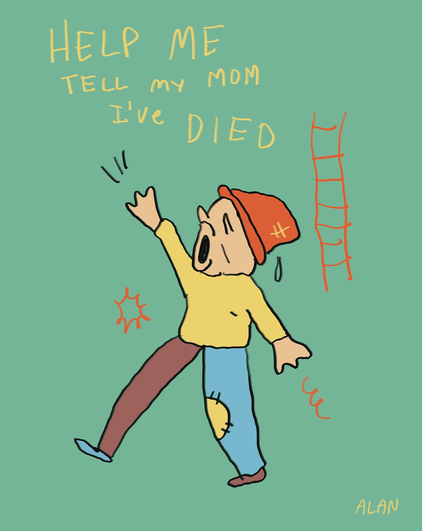 This is an overpriced print of a guy yelling "HELP ME TELL MY MOM I'VE DIED"